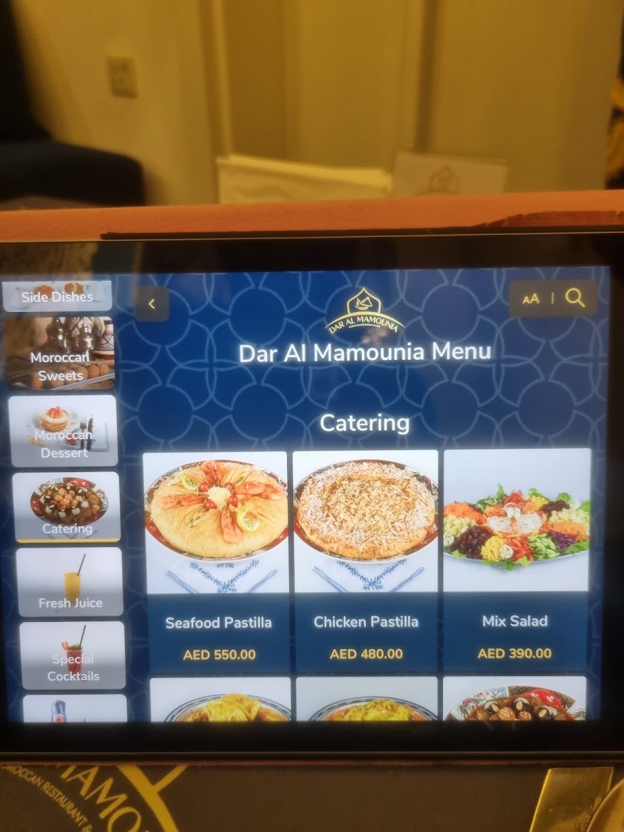 Dar Al Mamounia Restaurant invites you on a rich journey through authentic Moroccan cuisine located in the heart of Jumeirah, Dubai. The menu highlights traditional dishes like Tanjia, a slow-cooked delicacy, and the exquisite Chicken Pastilla, featuring delicate filo pastry filled with savory chicken, caramelized onions, and almonds, perfectly balanced with cinnamon and icing sugar. Every bite captures Morocco’s deep culinary heritage.